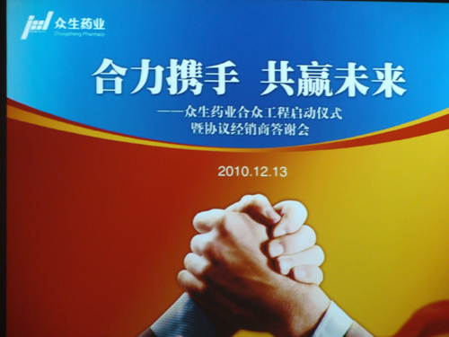 2010年12月13日,吉上吉咨询为广东众生药业股份有限公司量身打造的“合众工程”启动仪式暨协议经销商答谢会在东莞金凯悦大酒店隆重举行。吉上吉董事长邱波先生、项目总监王运龙先生、市场部总监徐和平先生应邀出席。邱波董事长在启动仪式上发表精彩演讲。